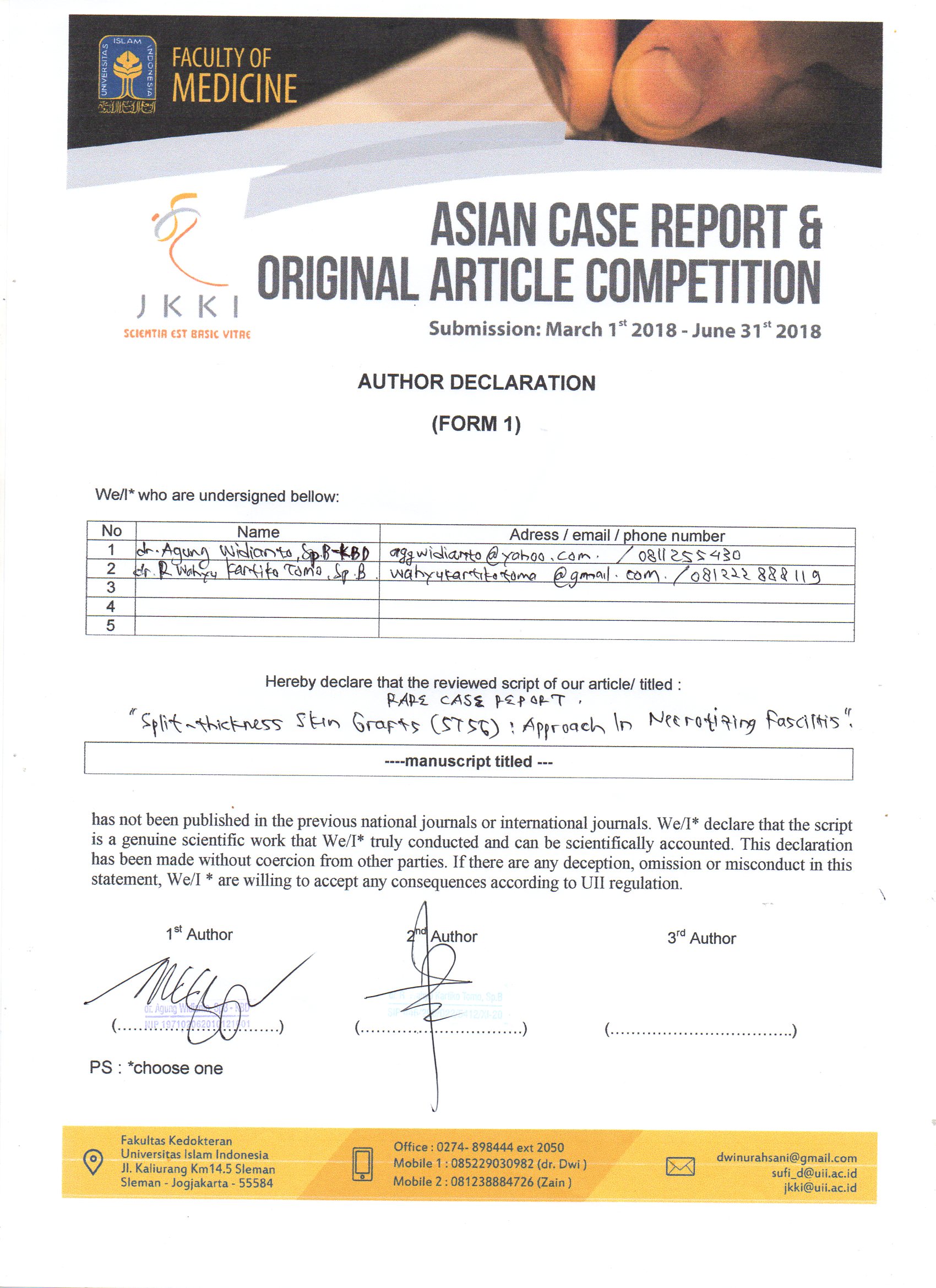 - Cheung JPY, Fung B, Tang WM, Ip WY. A review of necrotising fasciitis in the extremities. Hong Kong Medical Journal. 2009;15(1):44–52.