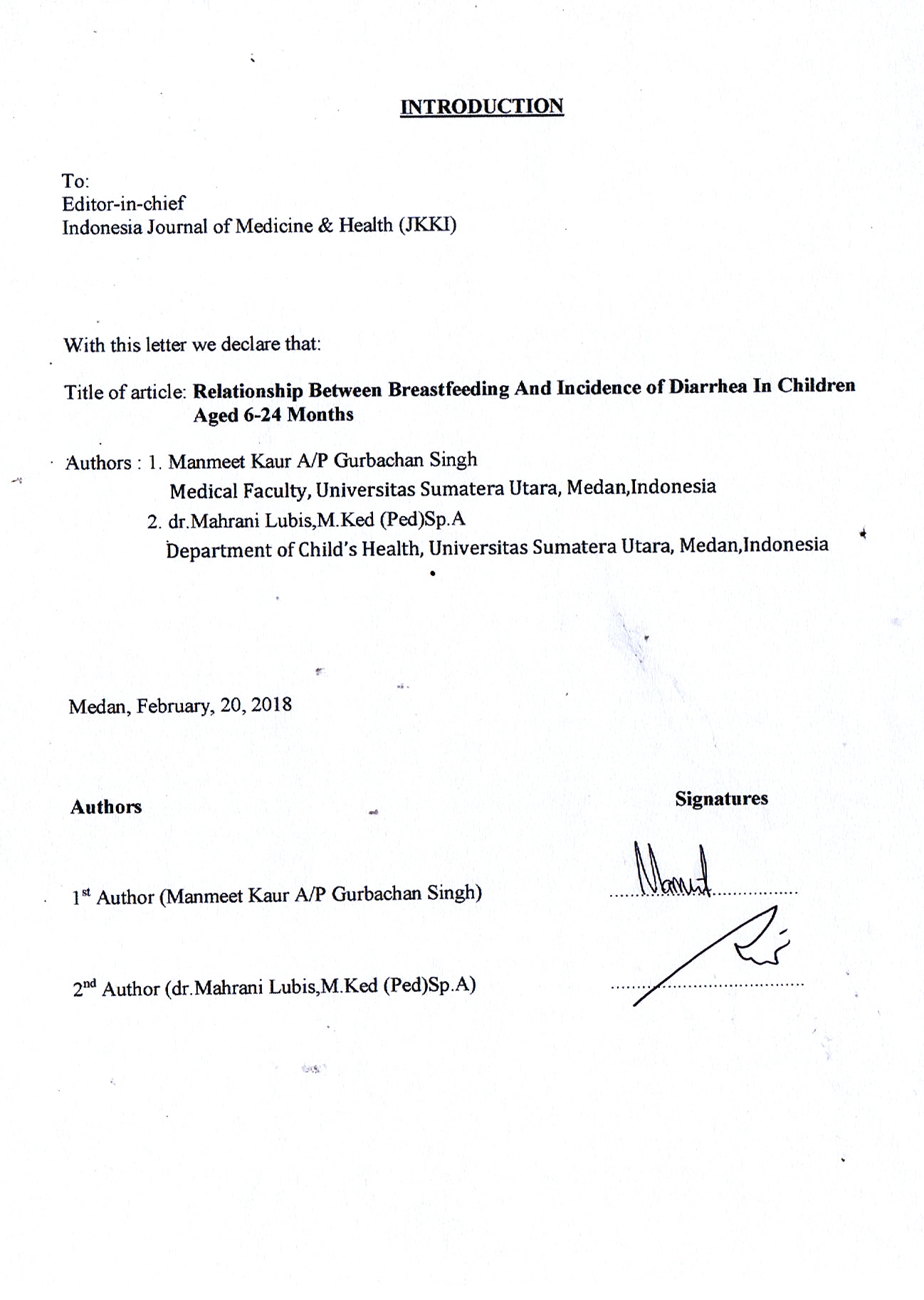 - Authors are permitted to share (copy and redistribute) the journal's published version of the work non-commercially (e.g., post it to an institutional repository or publish it in a book), with an acknowledgement of its initial publication in Jurnal Kedokteran dan Kesehatan Indonesia.