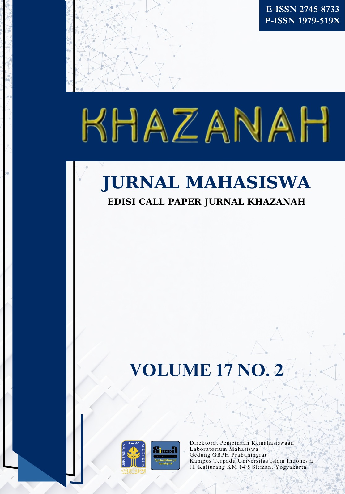 “Khazanah: Jurnal Mahasiswa” merupakan platform publikasi jurnal yang mulai diresmikan pada tahun 2009. Jurnal Khazanah diterbitkan oleh Direktorat Pembinaan Kemahasiswaan (DPK) Universitas Islam Indonesia yang bekerjasama dengan Kelompok Studi Laboratorium Mahasiswa (LabMa) Universitas Islam Indonesia. Jurnal Khazanah telah terverifikasi pada Online Journal System (OJS) dibawah naungan jounal.uii.ac.id sejak tahun 2011. Jurnal Khazanah telah rutin menerbitkan jurnal dalam 1-2 edisi per tahun. Karya yang diterbitkan merupakan suatu hasil penelitian orisinil atau tinjauan Pustaka yang ditulis oleh mahasiswa. Ruang lingkup karya yang diterbitkan mencakup sains dan sosial.