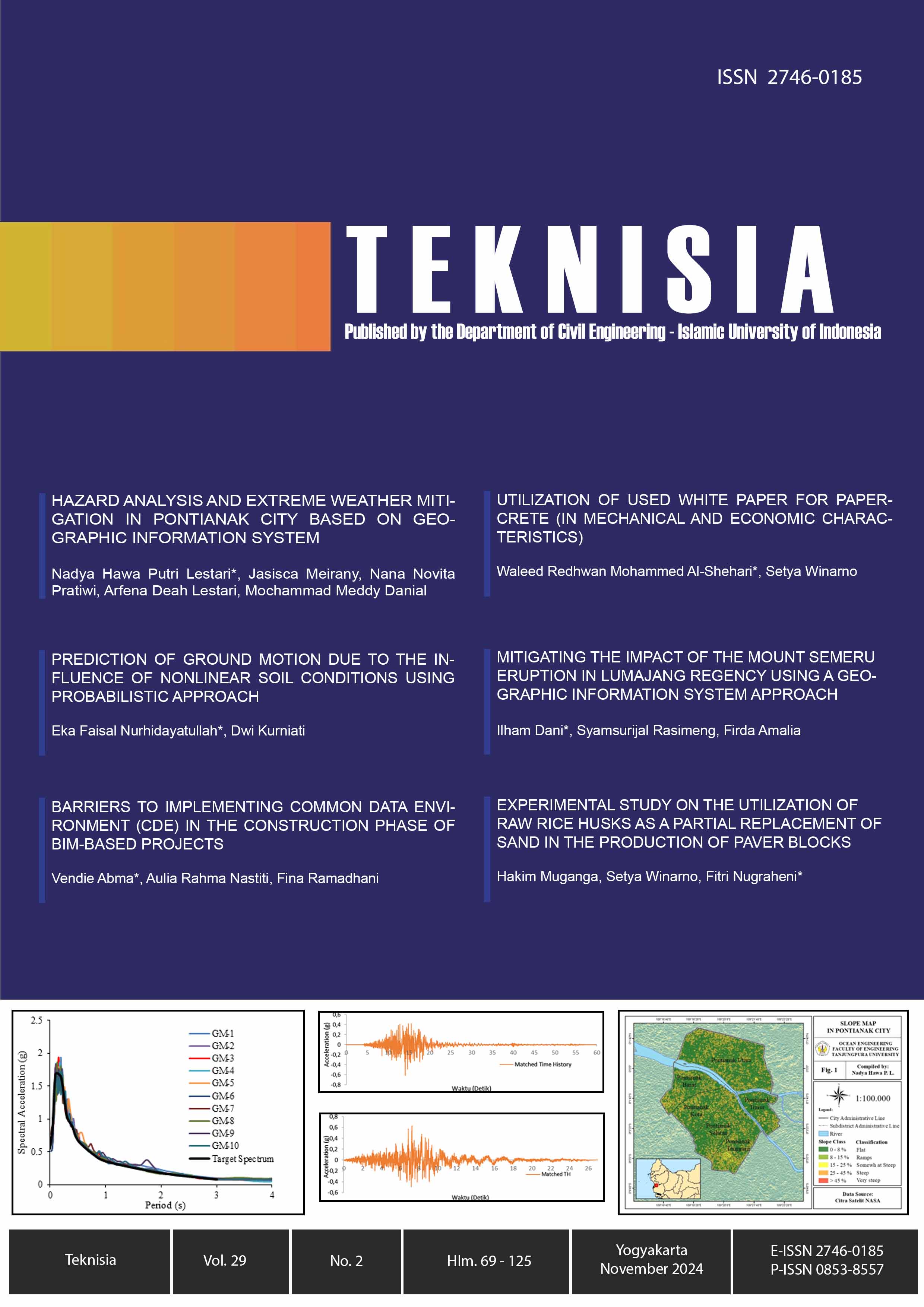 Teknisia is a scientific journal publishing articles in the field of Civil Engineering. The journal features research results, scientific reviews, and literature reviews, enriched by insightful applications to specific cases. Published bi-annually, in May and November. Issued by the Department of Civil Engineering, Faculty of Civil Engineering and Planning, Islamic University of Indonesia, Yogyakarta, Indonesia.